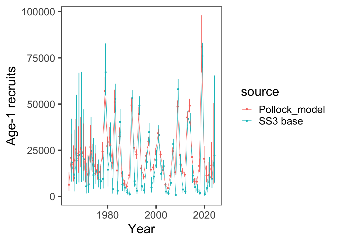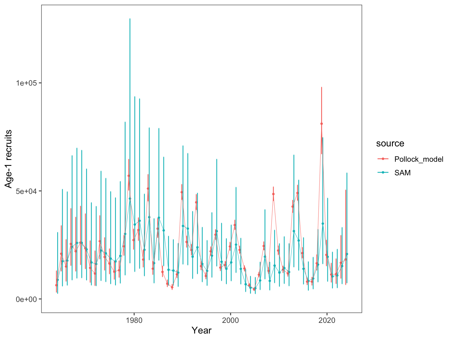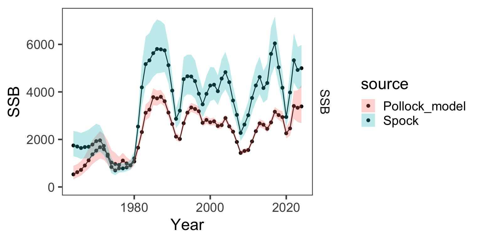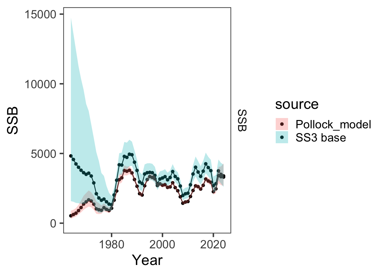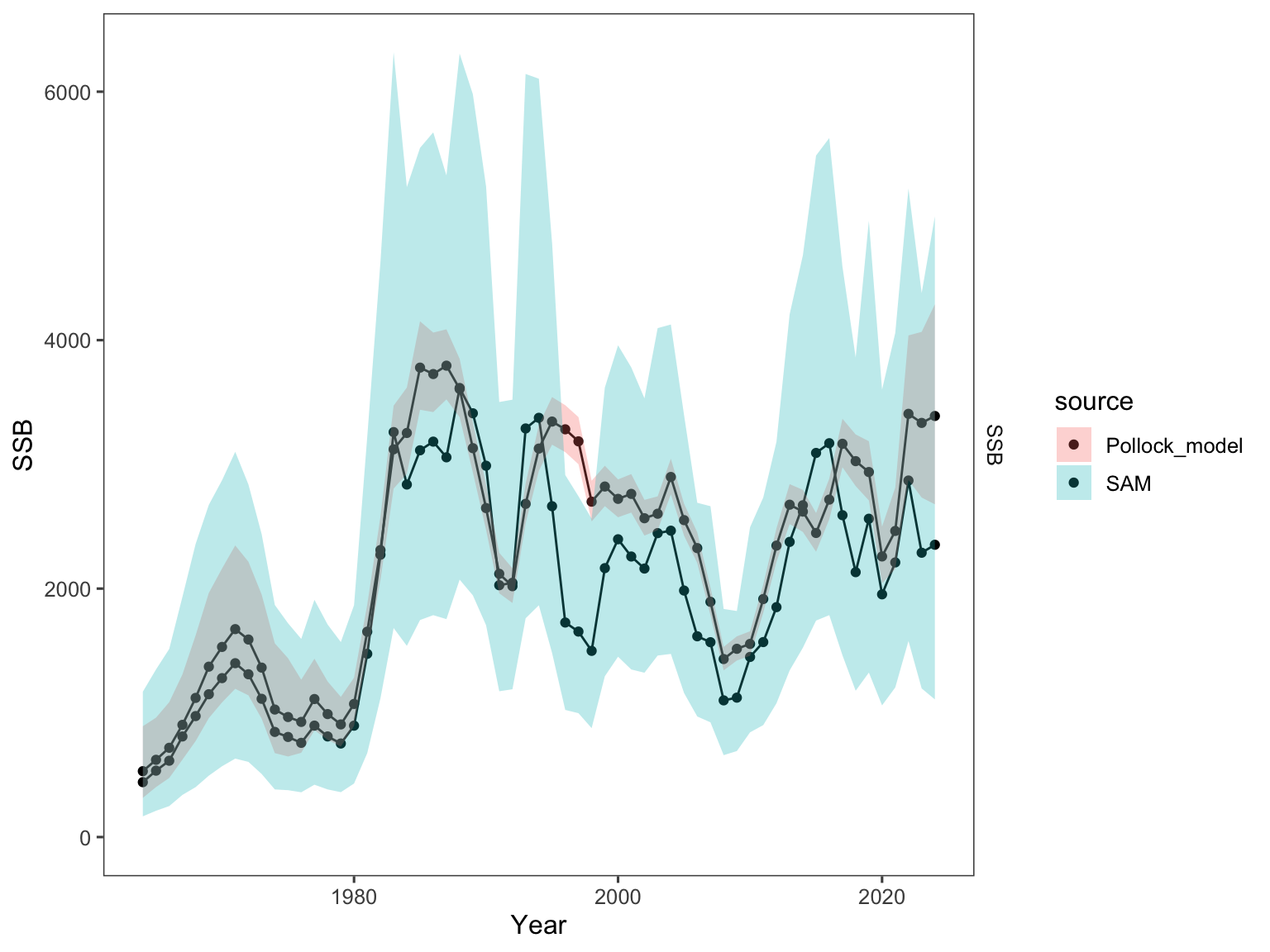 This report builds on the 2024 pollock stock assessment, using the same datasets but extending the evaluation through new tools, data comparisons, and sensitivity analyses. The primary goal is to evaluate how alternative data sources, modeling approaches, and assumptions affect the perception of stock status and management advice.