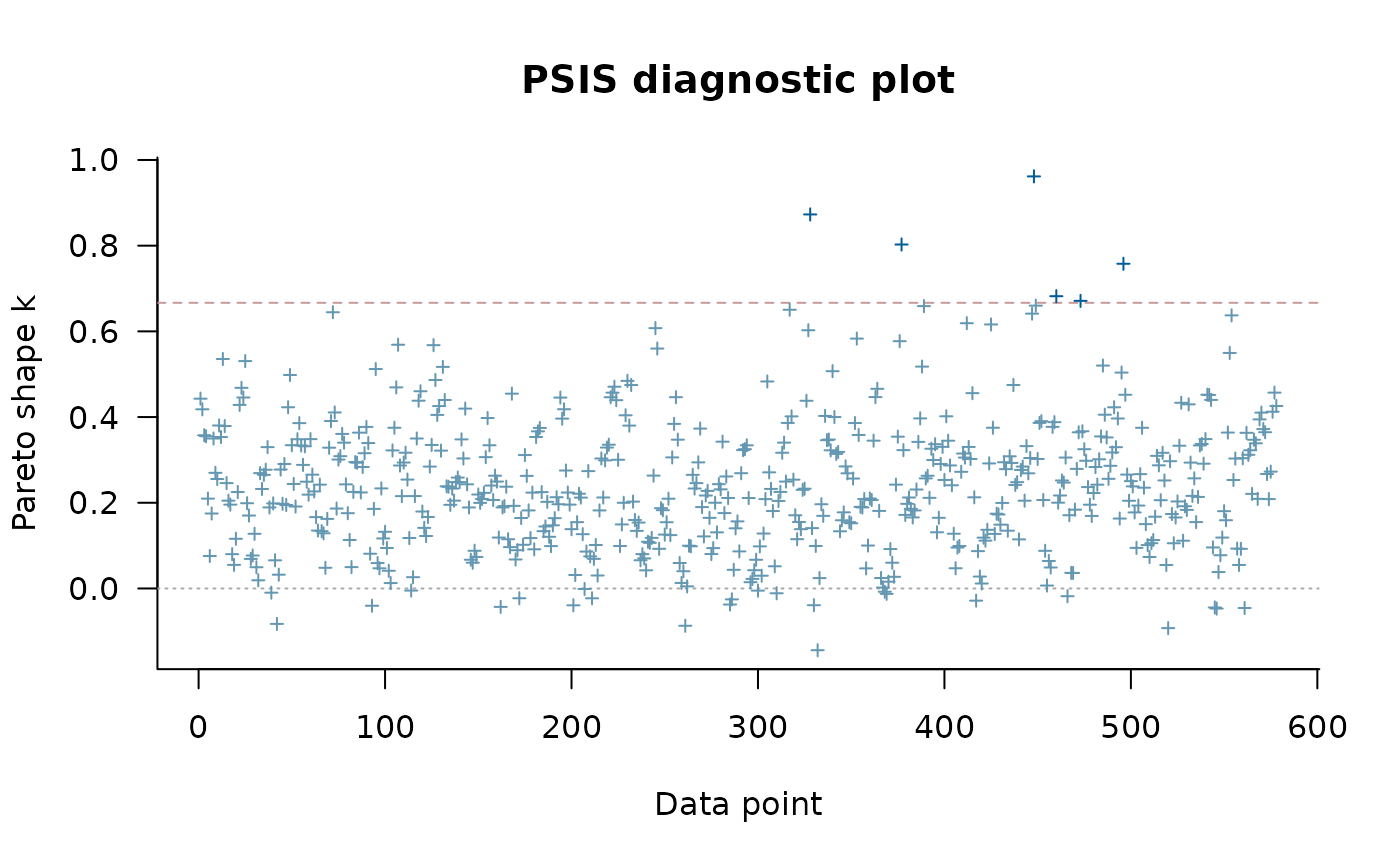 #> Pareto k value (1.3) is greater than 0.7. Importance resampling was not able to improve the approximation, which may indicate that the approximation itself is poor.Linking to other Bayesian tools